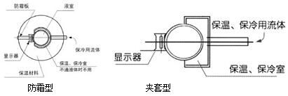 防霜型液位計主要用于零度以下的液體。低溫液體常在液位計表面結霜或冰無法觀看液面,在這種場合,可在顯示器前加裝丙烯基保護窗,整體加裝保溫材料,這樣就可經通過保護窗觀察到正確液位。 夾套型(J):