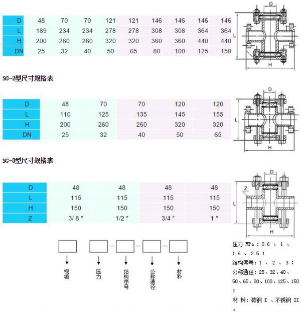 SG-1型尺寸規(guī)格表